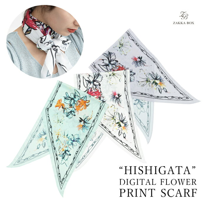 ひし形デジタルフラワープリントスカーフ【レディース 小物 スカーフ ひし形 フラワー 花柄 バッグチャーム ミント ラベンダー ホワイト】